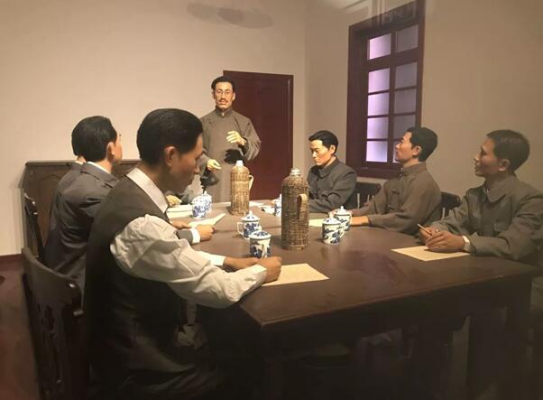 (1927年5月9日,在武汉举行的中国共产党第五次全国代表大会选举产生了首届中央监察委员会。上图为首届中央监察委员会委员召开会议时的复原场景,居中站立者为中央监察委员会首任主席王荷波。 吴嘉豪 摄)