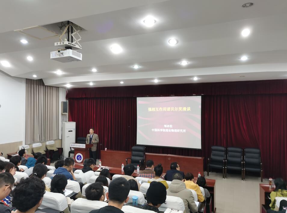 小阶梯教室作了题为“强相互作用诺贝尔奖漫谈”的学术报告。