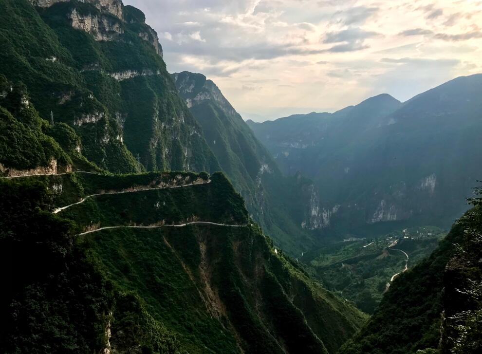 下庄村地处大山深处谷底,被四面千米高山绝壁合围。“想要富先修路”,1997年,毛相林开始带领村民们在绝壁上修路。没有机械设备,毛相林就带着大家腰系长绳,趴在箩筐里,吊在几百米的悬崖上打炮眼,炸出“立足之地”,再用钢钎和大锤凿,一步一步向前推进。他们“不等不靠,不怕苦不怕死,敢闯敢拼,坚持到底”,历时7年并付出了六位村民生命的代价,最终在绝壁上凿出了一条长达8公里的“天路”,书写下了愚公精神的当代传奇。