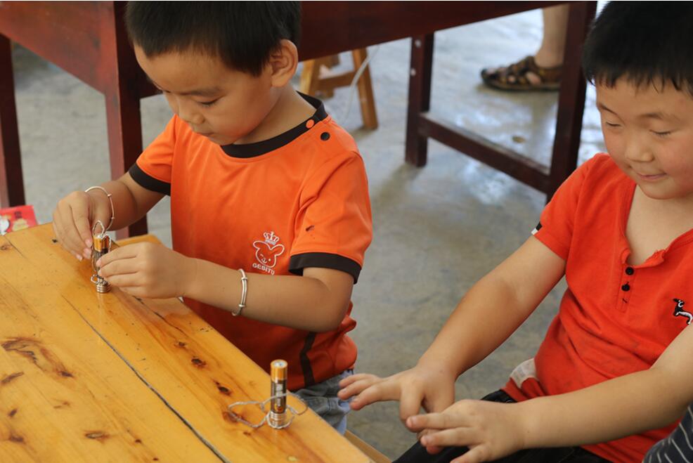 在科普体验环节,西大科普空间站的志愿者向同学们呈现了六项生动活泼的科普实验:隔空点灯、纸杯飞行器、简易电动机、电磁屏蔽、穿墙而过、纸片载水。通过“生活实例+理论讲解+动手制作”的方式,形象地向同学们展现了物理学的魅力。教室里传出阵阵笑声和掌声,小朋友们听讲时渴望的眼神和动手操作时专注的神情,就像为科学种子的生根发芽带来了阳光雨露。