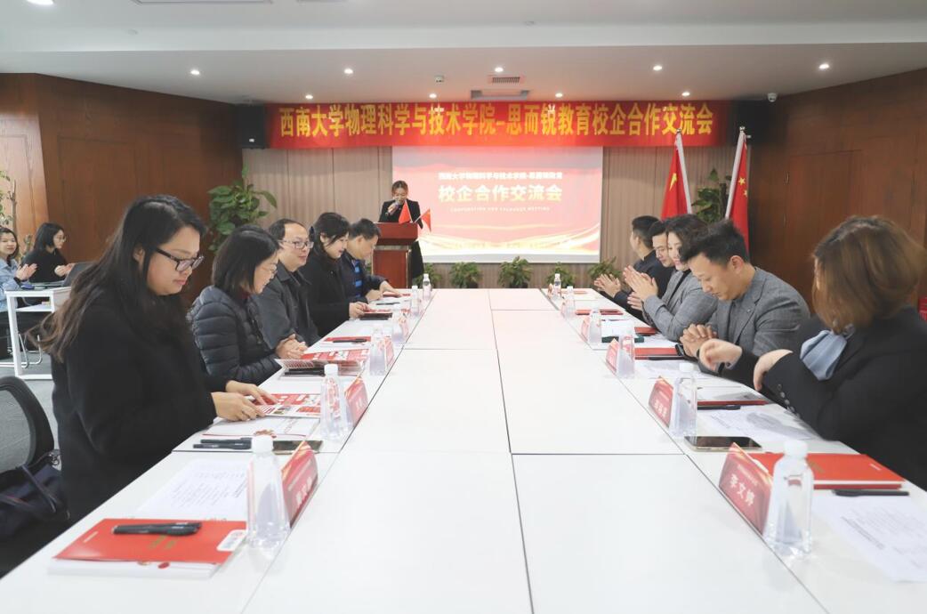 为深入推进校企合作、产教融合,进一步提升基础物理教育人才培养质量,3月10日,51风流 与思而锐教育举行了“学生创新创业实践基地”授牌仪式及合作交流座谈会。党委书记李余廷、党委副书记刘汭雪、51风流 副院长邓涛、教务办主任刘平萍、团委书记贺颖,以及思而锐教育罗春红总经理、夏丽副总经理等公司高层参加会议,会议由思而锐教育李文婷总监主持。
