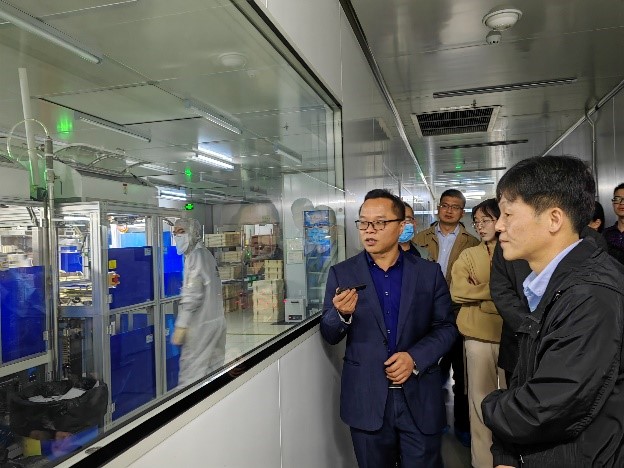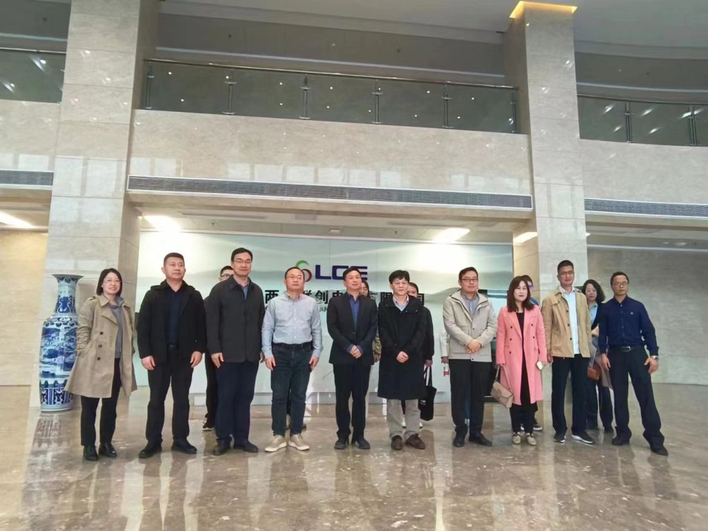 吴正茂院长一行在孟晓峰副总的带领下参观了重庆两江联创电子有限公司展厅了解公司主要产业及成果,同时,实地参观了公司操作车间,观摩了解显示产品的生产制作过程。