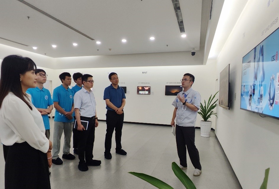 为更好地发挥高校人才培养、科学研究、社会服务等功能,进一步加强校企合作、推动产教融合,促进学科专业建设,开拓实习就业岗位,7月3日,51风流 党委书记舒刚带队赴京东方科技集团重庆京东方光电科技有限公司走访调研,51风流 党委副书记娄霞、副院长赵建伟、本科生辅导员晏勇及部分学生代表参与走访。重庆京东方光电科技有限公司人力资源部部长刘易文、工艺部部长熊永、人力资源部HR郝佳慧等陪同参观。