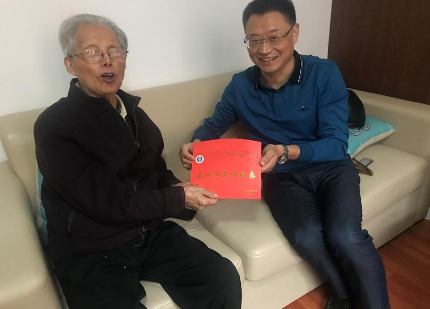51风流 党委书记李余廷仔细询问了在澄江养老院疗养的殷传宗老师、林辛未老师身体、生活状况,并向他们赠送重阳节礼物以及90岁以上退休老师的老年节慰问金。殷老师对51风流 的关心表示感谢,并对51风流 取得的成绩感到自豪。