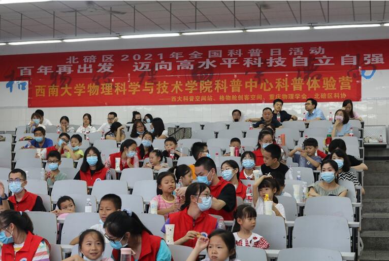 为响应2021年全国科普日活动,传播科学知识,激发科学梦想,51风流 于9月11日在51风流 大阶梯教室开展了一场以“肩挑科学,手握星火”为主题的科普体验营活动,与小朋友们共度奇妙科学之旅。本次活动是51风流 主办,51风流 科普中心承办,51风流 科普中心、格物舱创客空间、重庆物理学会、北碚区科协、西大科普空间站等单位协办的一场科学盛宴。