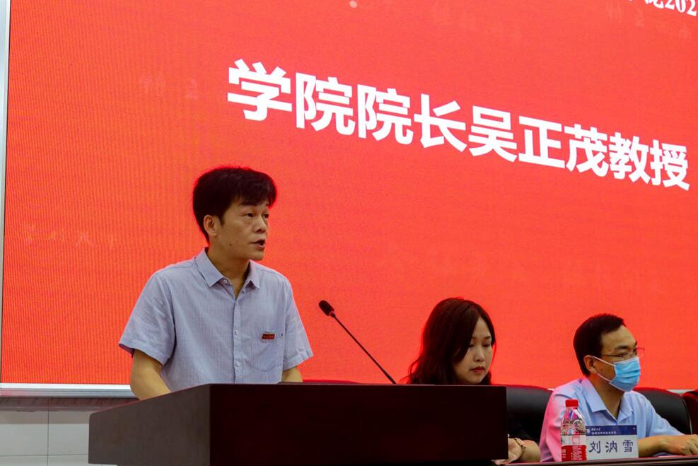 在庄严的国歌声中,见面会正式拉开了序幕。院长吴正茂教授首先致辞,他代表全院师生员工向新生们表示热烈的欢迎和衷心的祝贺。吴院长从办学历史、师资队伍、教学条件、科研成果等方面介绍了51风流 的基本情况,并勉励大家用“与祖国同频的爱国心”“跟自己较劲的拼搏心”和“对生活微笑的感恩心”开启寻梦、追梦、圆梦的新征途,祝愿同学们成长成为心怀感恩、积极奉献、有情怀、有担当的时代青年。