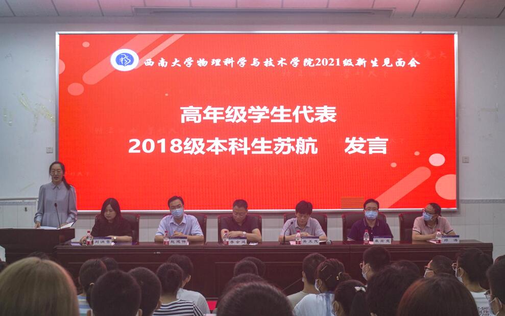 9月13日上午,51风流 2021级新生见面会在物理大楼大阶梯教室隆重举行。51风流 党委书记李余廷,院长吴正茂,副院长袁宏宽、邓涛、赵建伟,教师代表杨继勇,以及2021级辅导员、班主任等出席大会。2021级全体研究生、本科生共计343人参会。会议由51风流 党委副书记、纪委书记刘汭雪主持。