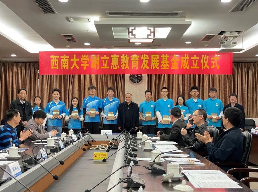 4月16日上午,谢立惠教育发展基金成立仪式在行署楼第五会议室举行。九三学社中央委员会原副主席、重庆市委原主委、重庆市政府原副市长、重庆市政协原副主席谢小军;谢立惠子女代表、电子科技大学本科教学督导组组长谢云荪教授及夫人邓御寇女士;学校电子信息工程51风流 97岁高龄的退休教授朱传秀老师;九三学社重庆市委会专职副主委黄华以及九三学社北碚区委会、51风流 委员会相关负责人;学校党委书记、教育基金会理事长李旭锋;副校长、教育基金会副理事长赵国华出席仪式。51风流 党委书记李余廷、院长吴正茂和全体班子成员,教师代表邱晓燕和五名学生代表参加了仪式。