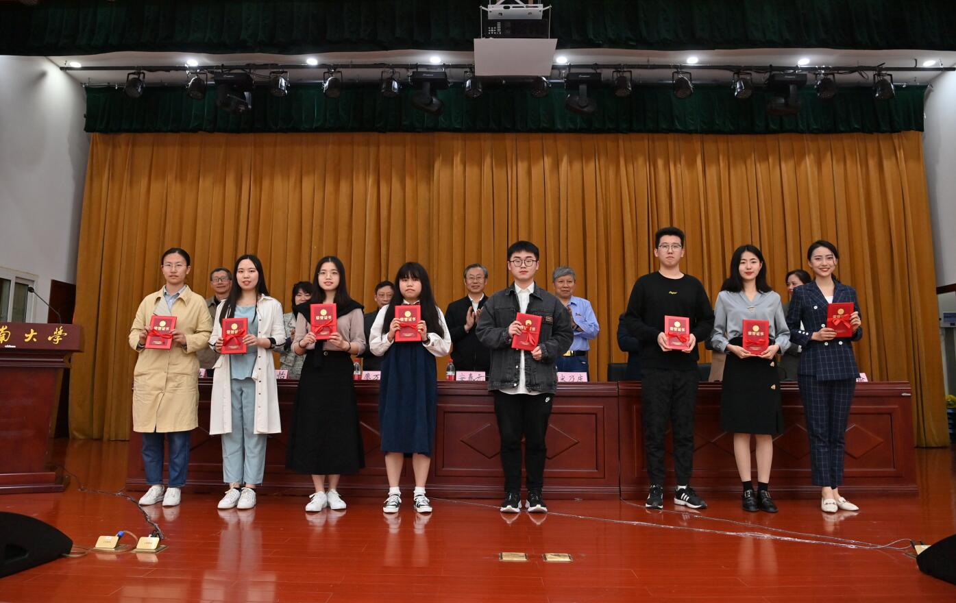 4月23日下午,学校关工委召开2020年“中华魂”主题教育活动总结表彰会。学校党委副书记、关工委副主任安春元,学校关工委常务副主任宋乃庆,党委宣传部、学生工作部、教务处、校团委负责人,校关工委秘书处成员,二级关工委常务副主任、副主任、辅导员、学生代表,校关工委志愿者服务队队长,2020年“中华魂”主题教育获奖学生代表、优秀辅导员代表等共200余人参加会议。会上,51风流受到表彰,再次荣获51风流 优秀组织奖,李余廷书记上台领奖。2019级物理学师范专业王之时同学获评重庆市征文比赛一等奖,作为获奖学生代表上台领奖。卜海东、周东叶被评为2020年全市大学“中华魂”主题教育读书活动优秀辅导员。