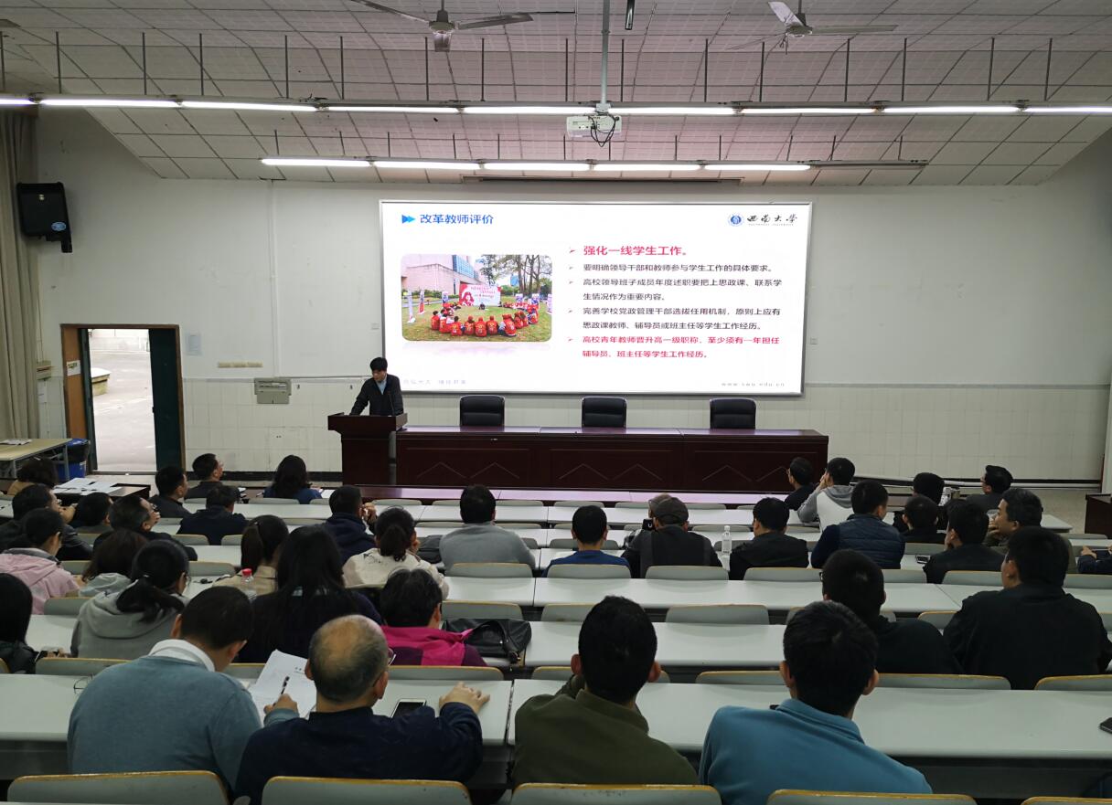吴正茂院长作学习贯彻《深化新时代教育评价改革总体方案》的专题领学。他从《总体方案》出台的背景、意义、基本定位和考虑,深刻阐释和分析了深化新时代教育评价改革的目标和重点任务,以及教育部对深化新时代教育评价改革的部署和要求,结合学校2021年工作要点和51风流 发展规划,着重阐释了教育评价改革的重点任务,并简要介绍了学校贯彻落实《总体方案》的工作思路和工作要求。