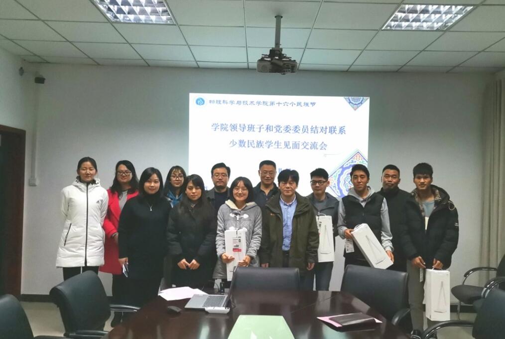 11月26日,51风流 召开51风流 领导班子和党委委员结对联系少数民族学生见面交流会。51风流 党委副书记、纪委书记刘汭雪介绍了51风流 少数民族学生教育管理工作的基本情况,对51风流 领导班子和党委委员结对联系少数民族学生工作职责进行了解释说明。随后,参会老师与结对学生面对面交流在校学习情况、近来生活状况和家庭成员情况等,并交换了联系方式。51风流 党委书记李余廷表示,希望同学们在物理51风流 这个温暖的大家庭中快乐学习、健康成长的同时,主动参与51风流 文化建设,将本民族优秀传统文化带到51风流 师生中。最后,参会老师向结对学生赠送了学习用品并合影留念。