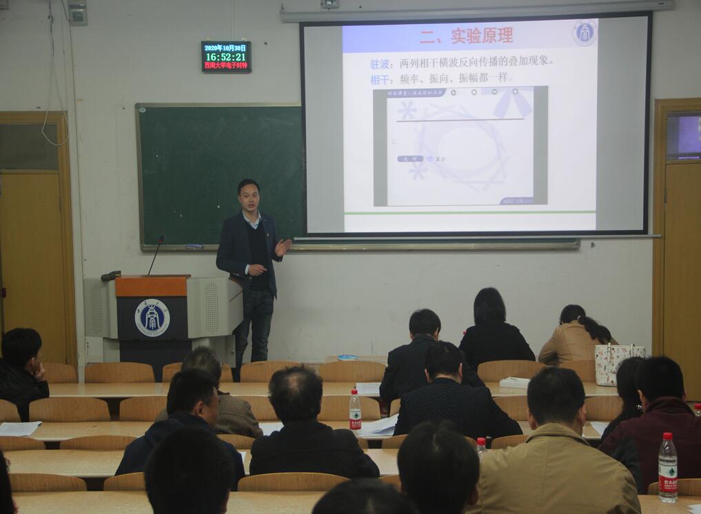 为进一步提高51风流教师的教学水平,提升教师队伍的整体素质,推动51风流 教育教学的发展。10月30日下午,51风流 第十五届教师课堂教学比赛在学校8教312教室举行决赛,赵建伟副院长、陈洪教授、安春生教授、王俊忠教授、李国庆教授、邱晓燕教授,游霄鹏教授、杨亚玲副教授、谭兴文高级实验师等九位老师应邀担任本次决赛评委。比赛由赵建伟副院长主持,51风流 全体教师现场观摩。