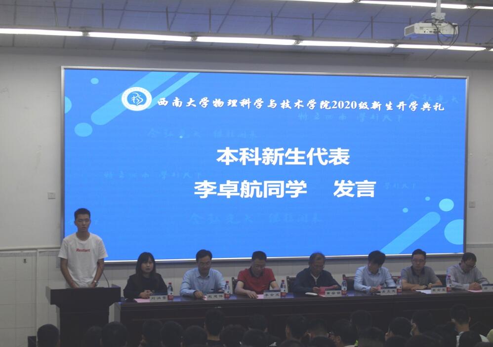 最后,2020级物理学公费师范1班李卓航作为新生代表发言,他表示:会秉承51风流 院训,以自信进取的青春姿态,努力成长为可堪大用的新时代物理人。