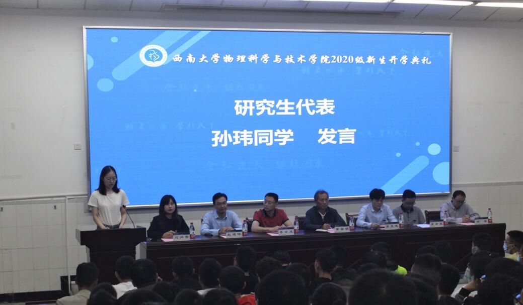 高年级学生代表、理论物理专业研究生孙玮同学,分享了自己本科四年踏实奋进最终成功入选学校“3+1+2”本硕拔尖人才培养项目的成长故事,与全体新生共勉。