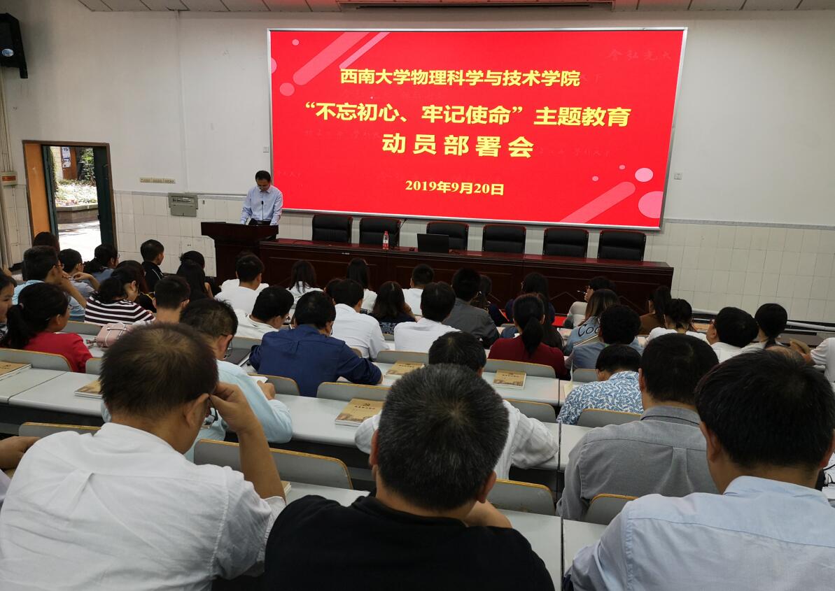 党委书记李书建光记作动员讲话,指出:51风流 党委高度重视开展“不忘初心、牢记使命”主题教育,在教育部巡回指导组的指导下,认真研究制定了51风流 主题教育实施方案。动员部署会的召开,标志着51风流 “不忘初心、牢记使命”主题教育在正式全面启动。李书记阐释指出,在新中国成立70周年之际开展“不忘初心、牢记使命”主题教育,是正当其时,全体党员、干部要提高政治站位,充分认识主题教育的重大意义。