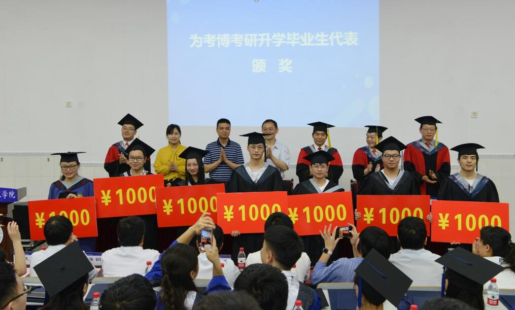 授位结束后,李建光书记宣读了2019届优秀毕业生、优秀毕业论文、升学毕业生等获奖名单。主席台上的领导老师为受表彰的学生代表颁奖。继续深造的同学还获得51风流 人均1千元的奖励。