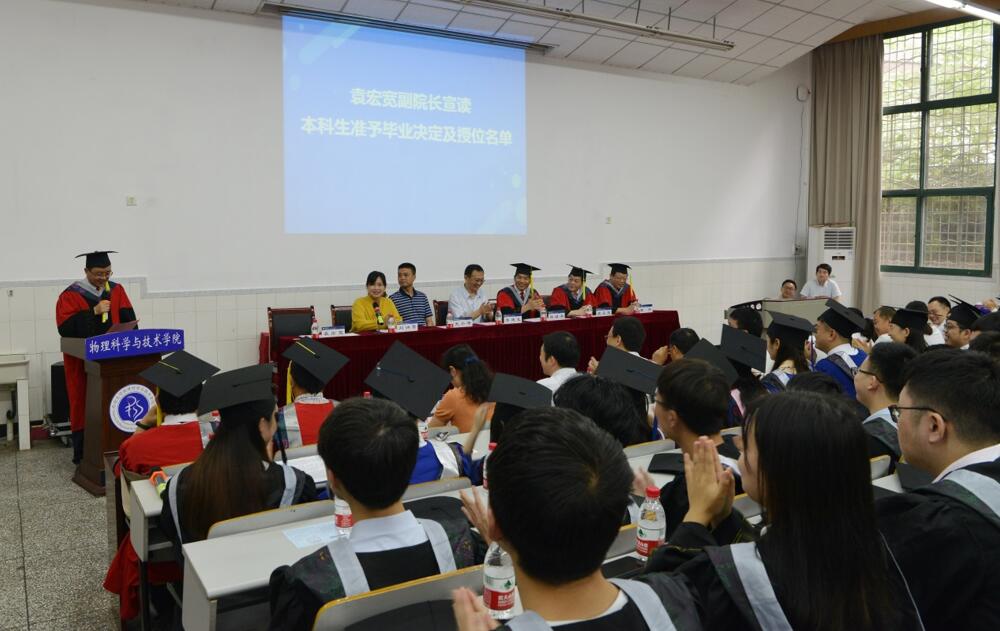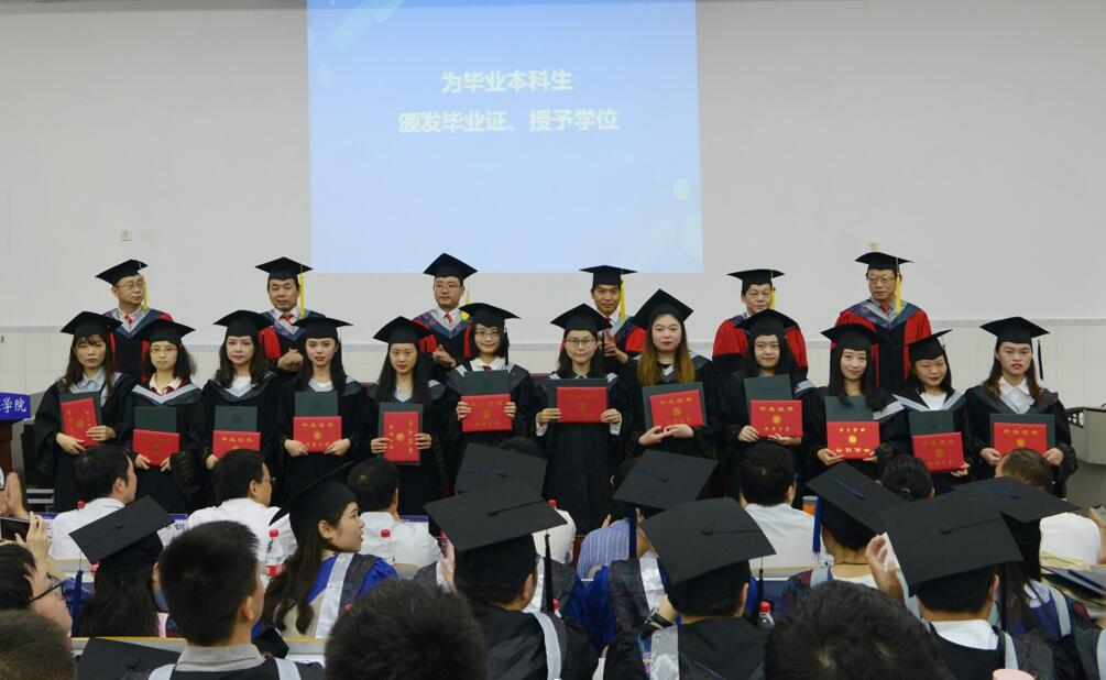 毕业典礼在庄严雄壮的《国歌》声中拉开序幕。吴正茂副院长、袁宏宽副院长分别宣读研究生、本科生准予毕业决定暨授位名单,51风流 5名博士生、56名研究生、238名本科生顺利毕业并获得学位。随后,院学术委员会委员为每位毕业生颁证、授位。导师们一一拨正学位帽上的流苏,与毕业生握手合影,仪式现场庄严有序。