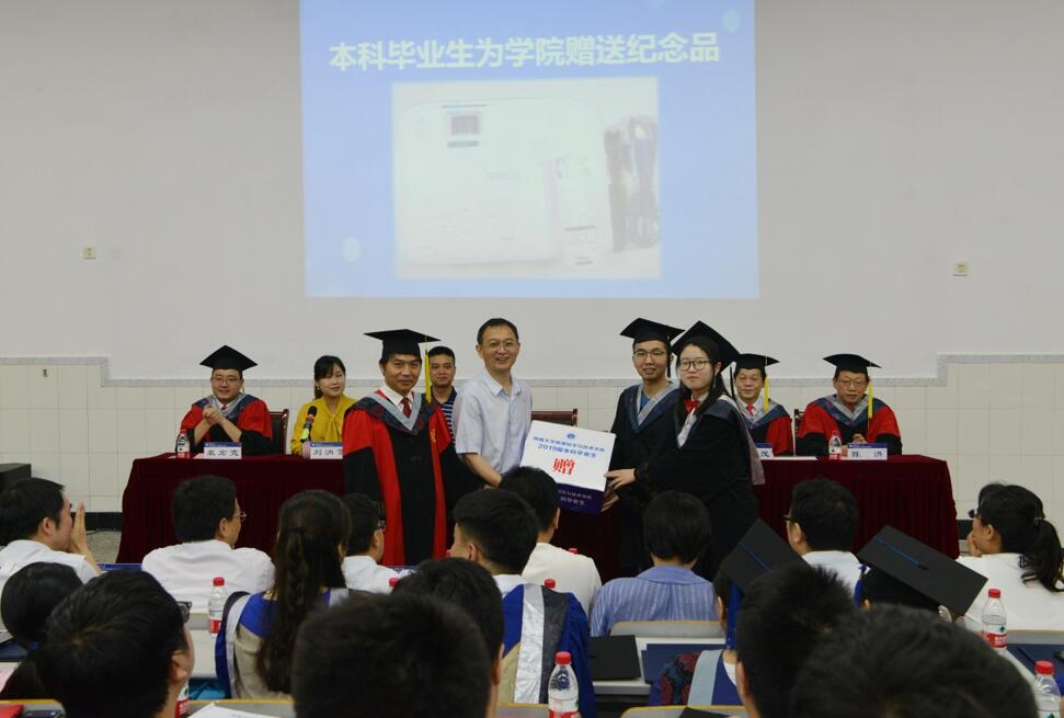 随后,主席台就坐的领导老师与毕业生互赠毕业纪念礼物。51风流 为每位本科和研究生毕业生都准备了纪念品,让51风流 这段青春的岁月和回忆,定格在这件定制了每个同学学号的专属钥匙扣上,也借此送上51风流 最真挚的祝福和叮咛,欢迎毕业生们带上心灵的钥匙随时回母校看看。李书记、熊院长代表51风流 接受了全体本科毕业生的赠礼——一台投影仪。2019届毕业生表达了对51风流 辛勤培育的感恩之情。
