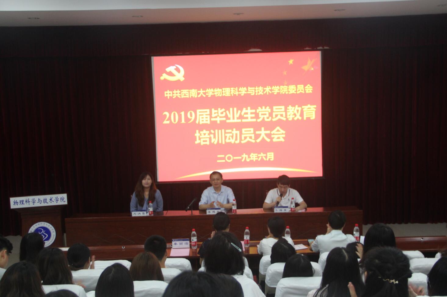 6月10日上午,51风流 2019届毕业生党员教育培训动员大会在小阶梯教室举行。院党委书记李建光、副书记刘汭雪、研究生党支部书记熊中碧、本科生党支部书记王彪、贺颖及60余名毕业生党员参加了动员大会。动员大会由组织员卜海东主持。