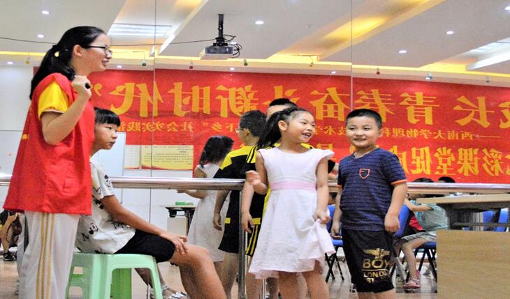 7月16日,51风流 暑期“三下乡”教育关爱服务团走进九龙坡区谢家湾街道黄家码头社区,以“暑期嘉年华”趣味课堂翻开了院队社会实践活动的第一页。志愿者开展安全自护教育,向孩子们普及夏季安全常识,分步骤讲解溺水和中暑的急救知识;在法律小课堂上,志愿者借助动画、视频、小组讨论等多种途径,讲授《未成年保护法》的主要内容,讨论“如何做一个守法的小公民”;在时政宣讲中,志愿者和孩子们畅聊“我心中的英雄”,聆听孩子们心中的英雄名字“雷锋”、“岳飞”、“爱因斯坦”……讨论英雄的共同品质“爱国情怀、英雄气概、时代担当、奋斗精神”……