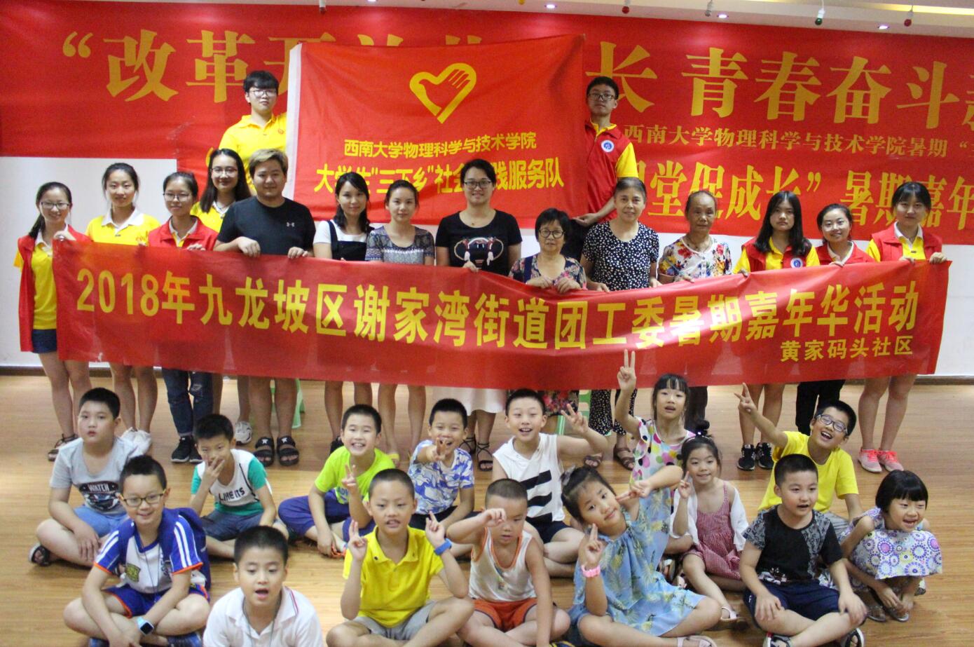 黄家码头,旧时繁华水上轮运码头,现今领路建设幸福社区,这是一个蓬勃发展、生生不息的地方。7月16日-21日,51风流 教育关爱团,与重庆九龙坡团区委携手创新“暑期嘉年华”项目,赴谢家湾街道黄家码头社区开展了为期六天的“改革开放共成长 青春奋斗新时代”暑期“三下乡”社会实践活动,取得良好的社会反响。