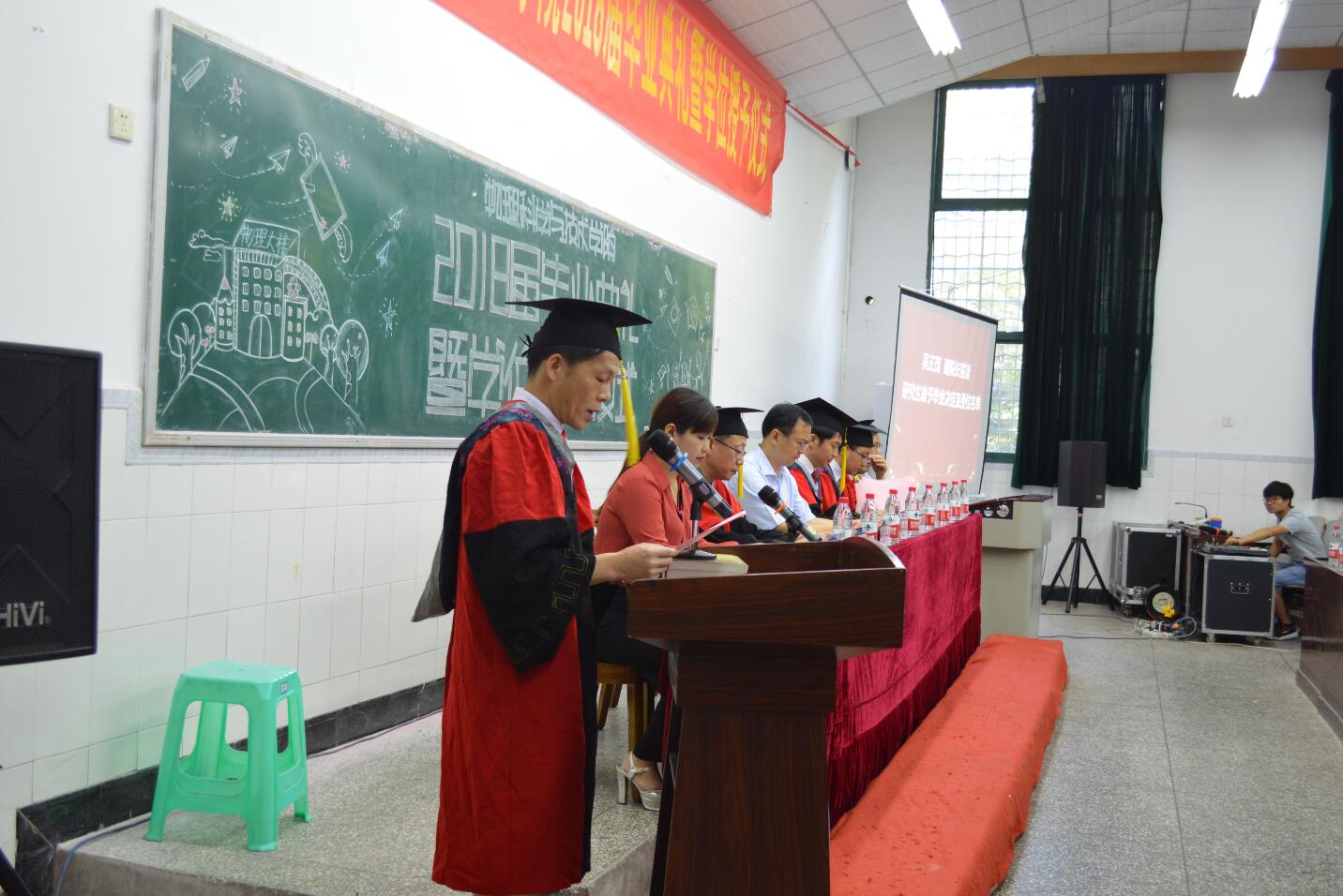 6月27日上午9时,51风流 2018届学生毕业暨授位典礼在大阶梯教室隆重举行。典礼由51风流 党委副书记刘汭雪主持,院党委书记李建光、院长熊祖洪教授、副院长吴正茂教授、副院长袁宏宽教授,院学术委员会委员陈洪教授、王俊忠教授以及教师代表马忠平副教授出席典礼,家长代表、辅导员班主任、2018届毕业研究生及本科生共计300余人参加了典礼。