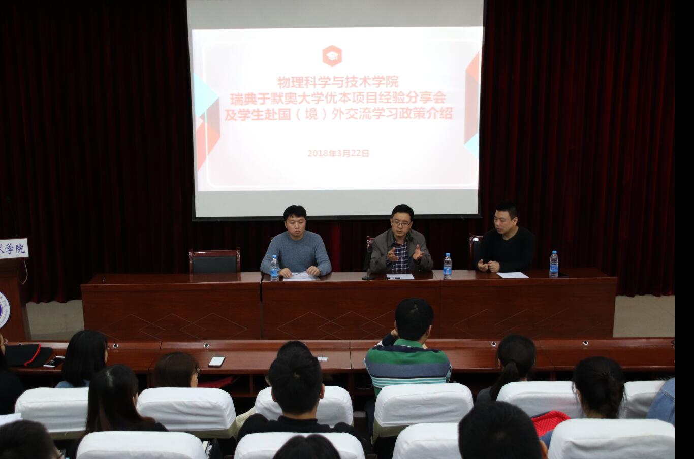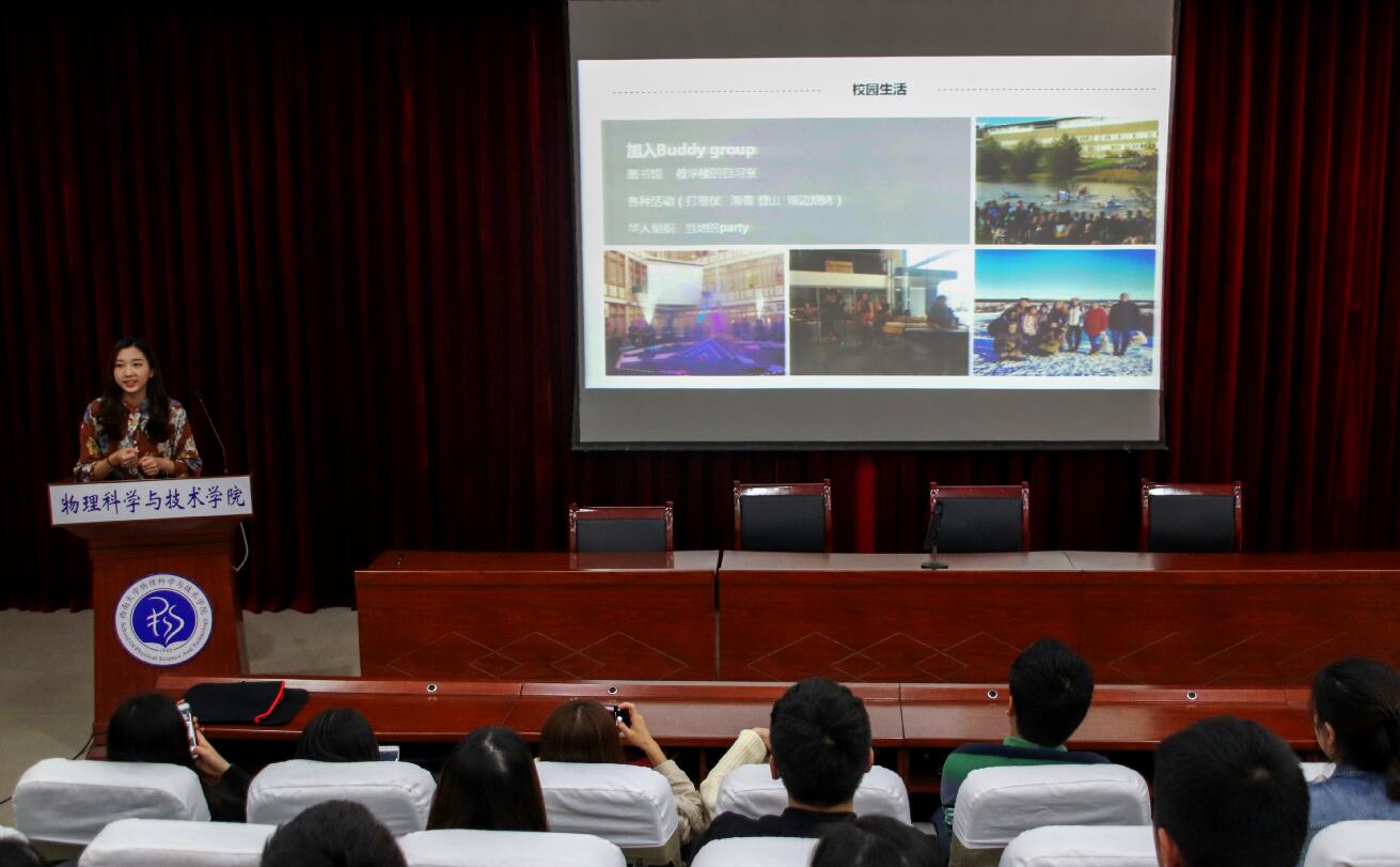 2014级学生杨双溢、辜丽叶就瑞典于默奥大学交换项目进行了经验分享。两位同学从专业学习介绍了相关物理实验操作、实验器材的运用,从风土人情方面介绍了瑞典的地方风情和风貌,引起了大家浓厚的兴趣。在互动交流环节中,同学们踊跃提问,咨询了托福、雅思等相关具体问题,老师们一一进行了详细解答,并提醒有留学意向的同学提前做好准备。