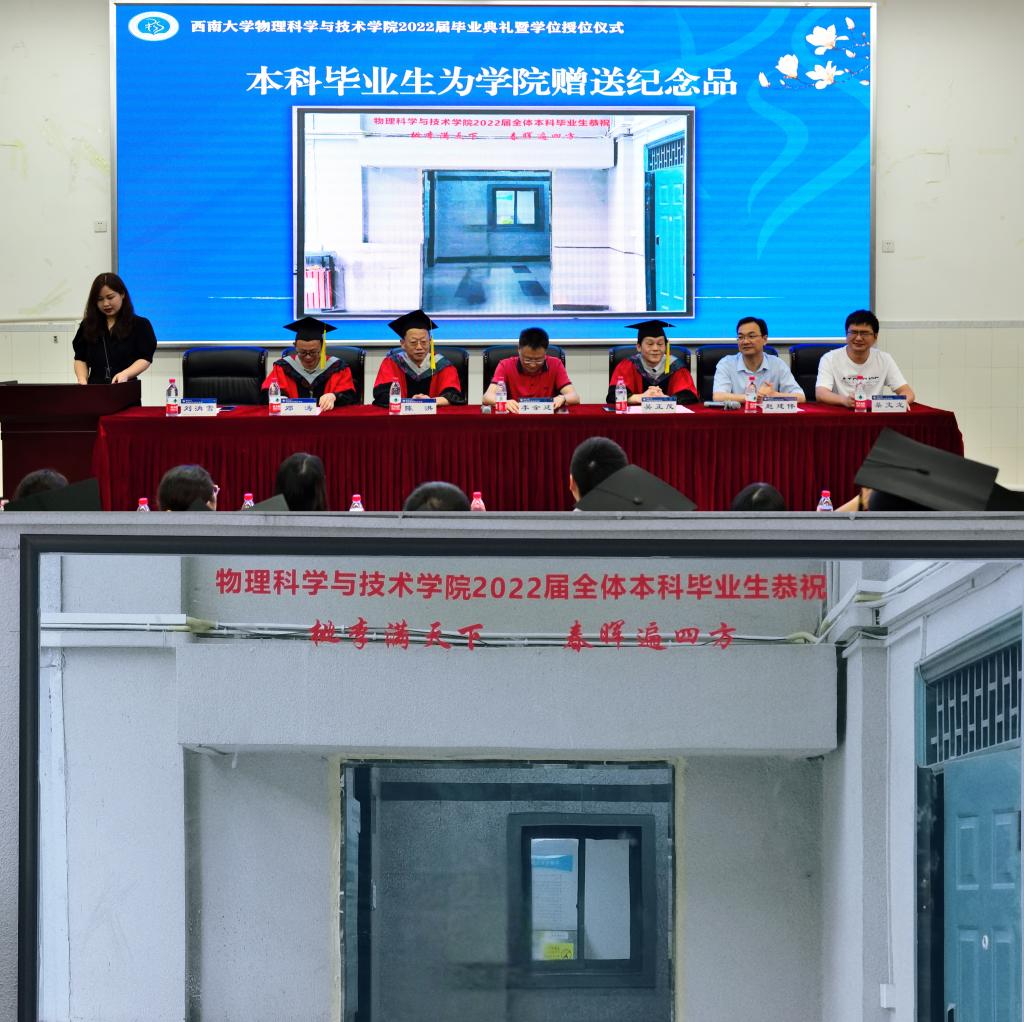 院党委书记李余廷老师,校学术委员会委员、院长吴正茂教授,院党委副书记、纪委书记刘汭雪,院学术委员会主席陈洪教授,院学术委员会委员、副院长邓涛教授,副院长赵建伟教授,副院长桑文龙教授出席典礼。51风流 学术委员会全体成员、工会主席、办公室主任、教务办主任、教师代表、毕业年级辅导员和班主任、2022届毕业生共计200余人参加了典礼。典礼仪式由51风流 党委副书记、纪委书记刘汭雪主持。