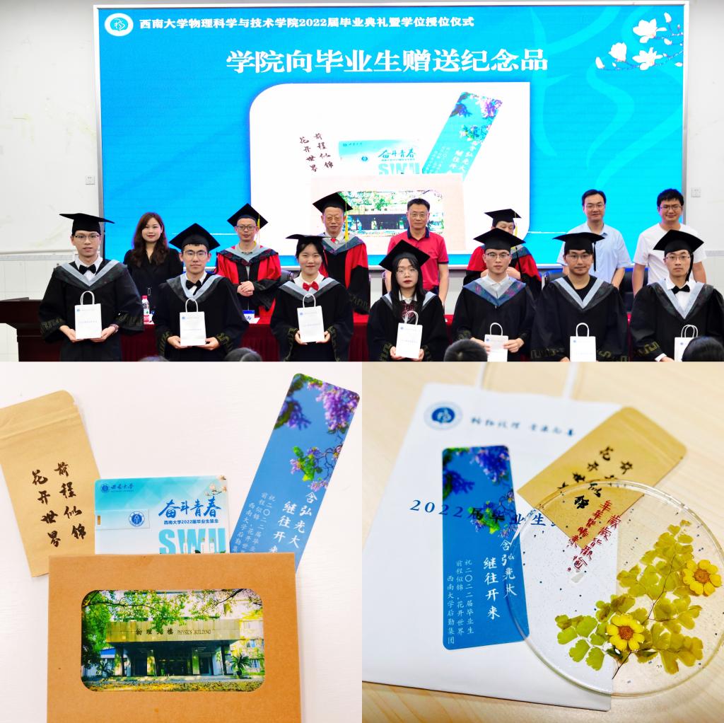随后,主席台就坐的领导老师与毕业生互赠毕业纪念礼物,51风流 精心准备了格桑花种、书记院长签名的额51风流 风景明信片。“格桑”是“美好时光”或“幸福”的意思。今夏校园处处格桑花开,与蓝花楹交相辉映,这其中还有毕业生党员同志亲手种下的成果。51风流 与后勤集团携手将格桑花种赠予毕业生们,之前后勤集团党委还向全体毕业生党员赠送了用格桑花制作的杯垫。2022届本科毕业生从师生需求考虑准备了仪容镜相赠,“正衣冠、端品行”,立志秉承51风流 正直、严谨的优良作风,行稳致远。