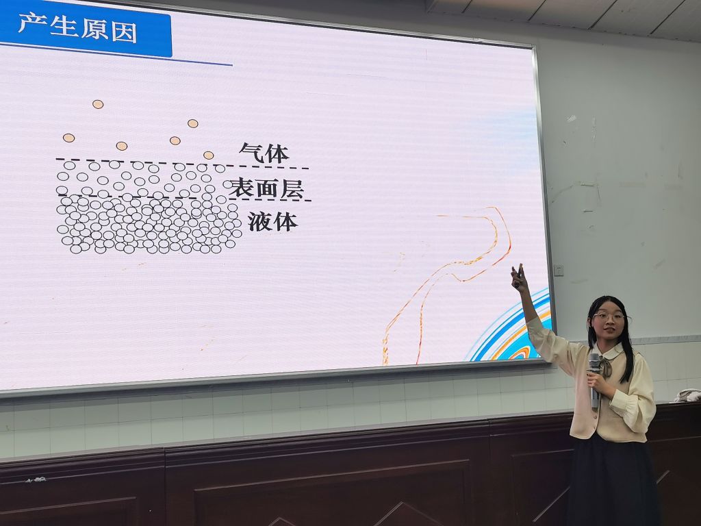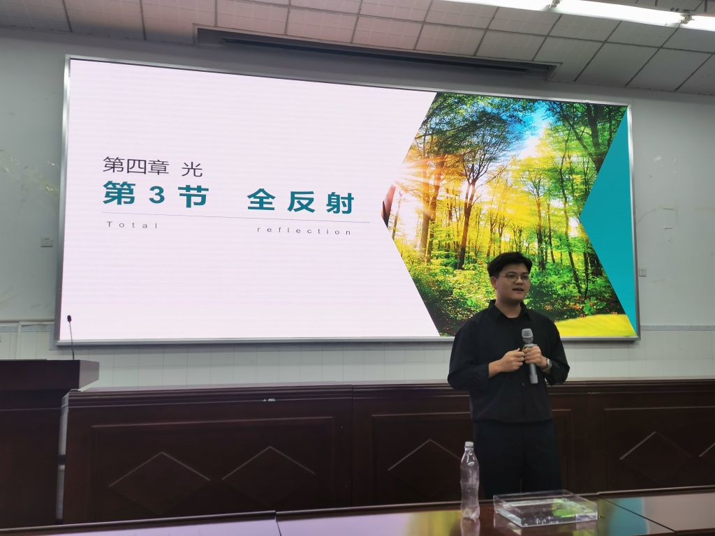 随后,2019级五位同学带来了精彩的示范课分享。来自师范1班,在广西柳州铁一中学实习的班露丹同学通过探究影响电荷间相互作用力的因素,沿着库仑的研究过程带领大家推导出库仑定律。来自师范1班,在重庆市朝阳中学实习的杨博皓同学从弯曲“光流”进行引入,补充光疏介质和光密介质的概念,用实验观察“全反射”现象,以电磁波的传播速度为问题通过实验探究结论。来自师范1班,在云南省昆明市第八中学实习的赵立佳同学以物理学史为讲述脉络,用讲故事的形式将发现电子的过程展现出来,课堂生动有趣,带领大家领略了原子核式结构模型的建立过程。来自师范3班,在重庆兼善中学实习的王海旭同学利用猫和老鼠的动画片段演示了反冲现象,又通过演示实验,请学生总结现象得出结论,在教学中培养学生的自主学习能力和实验观察能力,并分析了实验现象背后的动量守恒定律。来自师范1班,在湖南省长沙市明德中学实习的吴琪同学通过实验导入,设置疑问激发兴趣,带领同学们感受液体表面张力的存在,再联系背景知识引导学生突破表面张力的产生原因这一难点,最后联系生活实例,渗透了物理走向生活的教学理念。