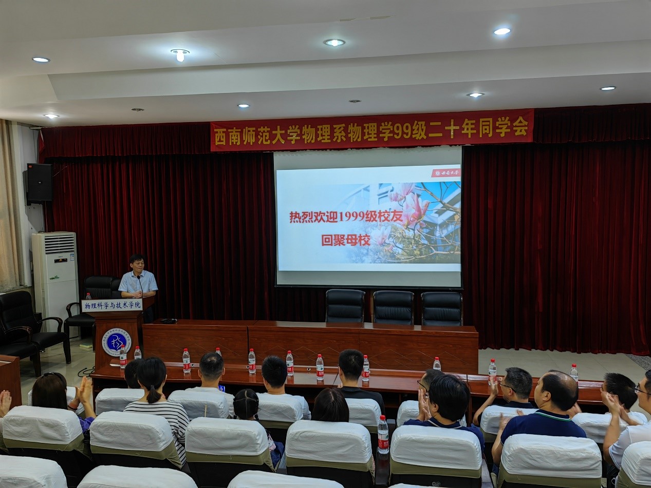 7月15日,51风流99级物理学专业30余名校友在阔别多年后重回母校怀抱,在51风流 小阶梯教室举行毕业20周年聚会,看母校新貌,温恩师教诲,叙同学情缘。51风流 院长吴正茂、办公室主任刘平萍参加了交流会。
