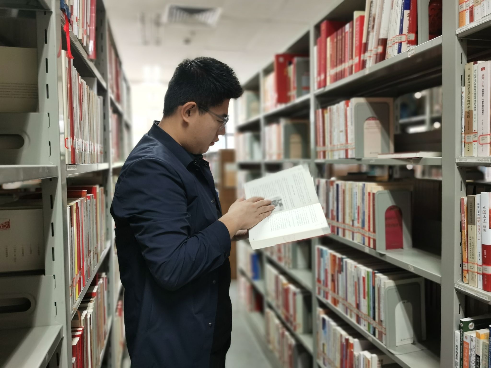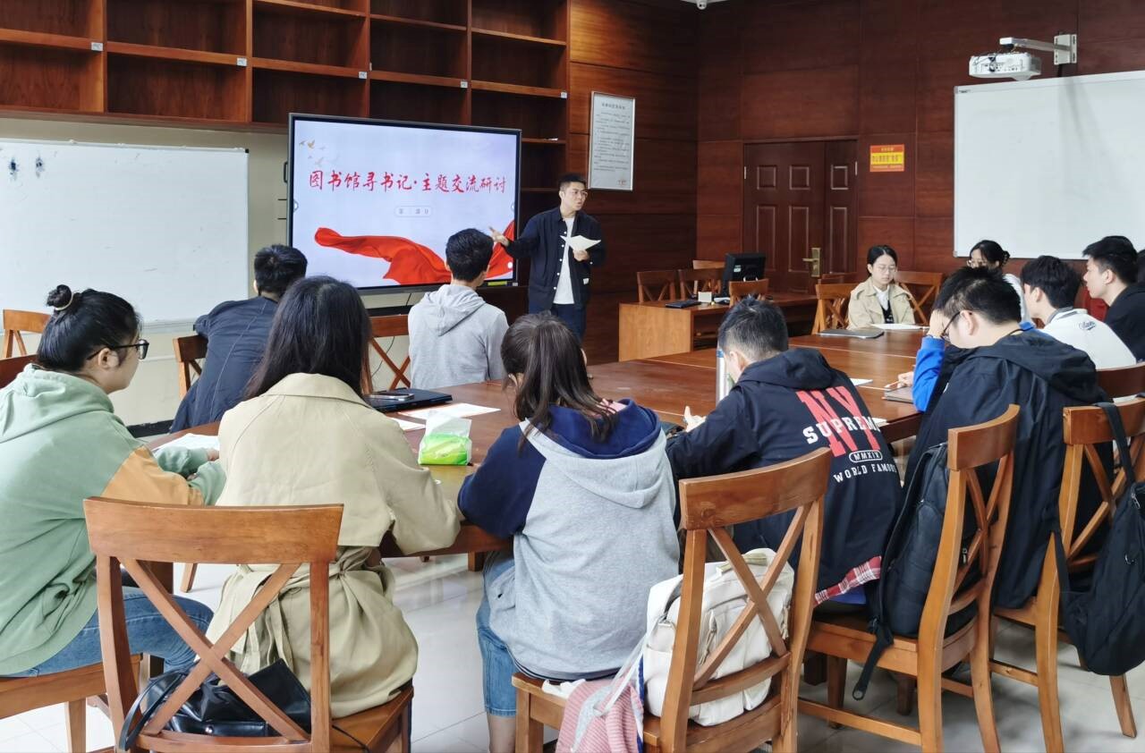 接下来的图书馆寻书记·主题交流研讨环节。支部党员同志分组围绕本次活动主题走出教研室,深入中心图书馆,在各个区域寻找讲述爱国故事、中华民族故事的书籍或报刊。