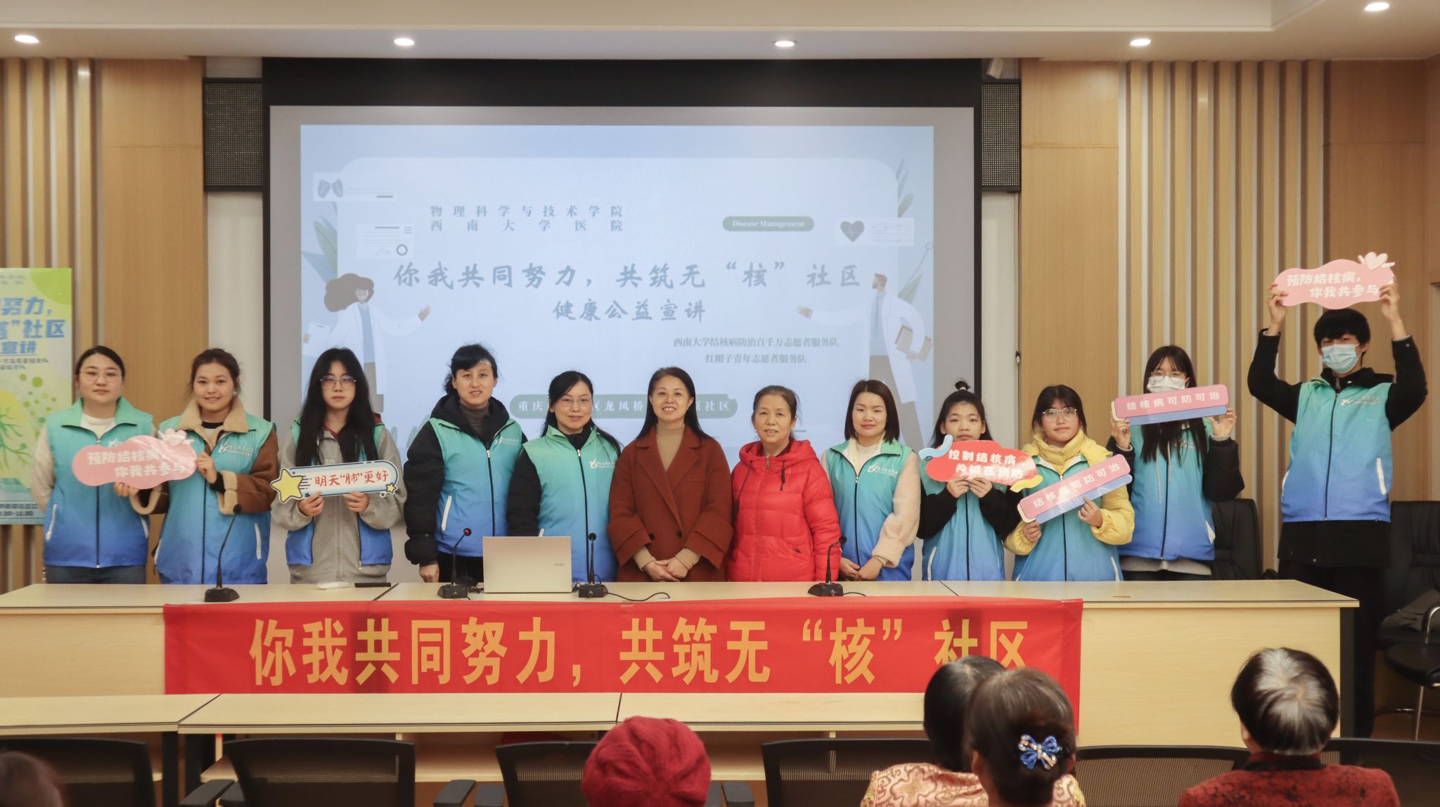 喜迎12.5国际志愿者日,办好“红帽子”志愿者文化节,51风流 “红帽子”青年志愿者服务队携手51风流 结核病防治百千万志愿者服务队、51风流 红十字会学生分会走进北碚区龙凤桥街道燎原社区,在社区活动中心开展了“预防肺结核”健康公益宣讲活动。本次活动有幸邀请到了重庆市结核病防治所的李汝霞老师和杨丹老师,51风流 派出青马工程第一期10名优秀学员担任志愿者,活动由51风流志愿者部负责人徐嘉悦同学主持。
