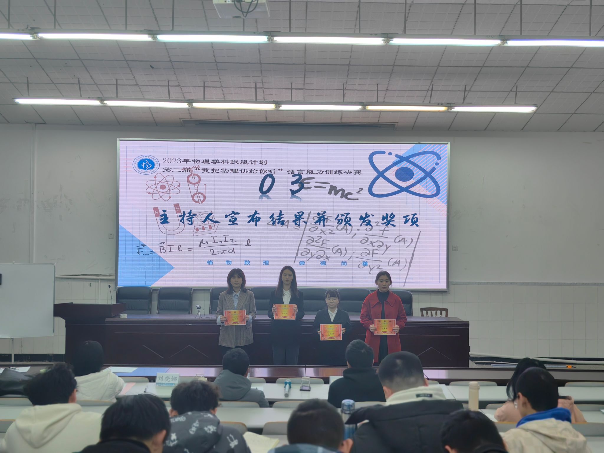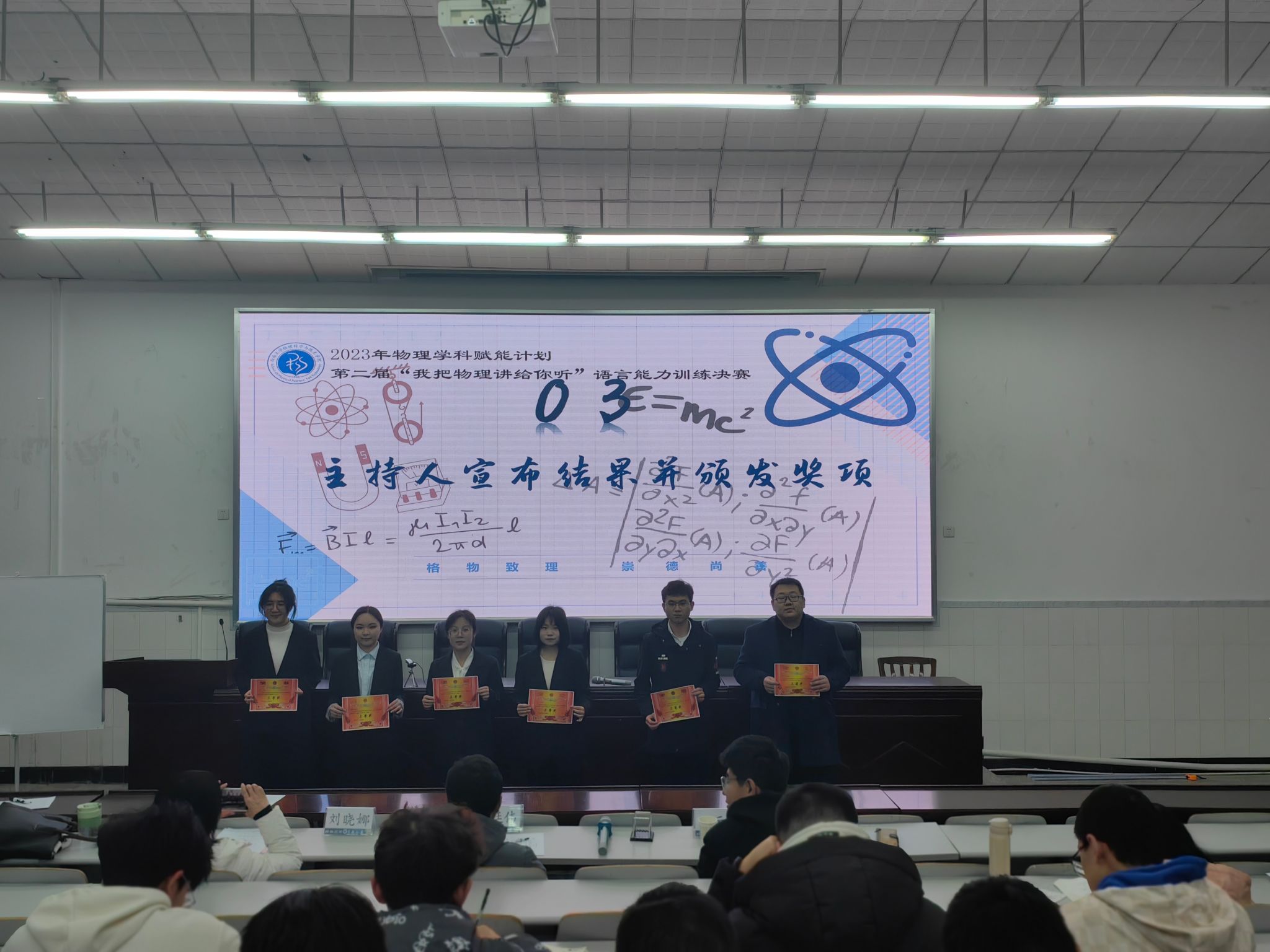为提高学生物理学科素养,提升语言表达能力,增强就业竞争力,12月17日下午51风流在物理大楼大阶梯教室举办了2023年“物理学科素养赋能计划”之第二届“我把物理讲给你听”课前五分钟语言能力训练汇报比赛决赛。