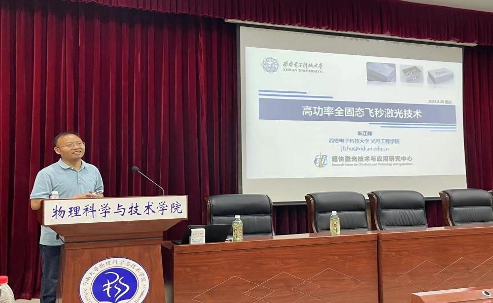 2024年4月26日下午,西安电子科技大学超快激光技术与应用研究中心主任,陕西省秦创原“科学家+工程师”队伍首席科学家朱江峰教授应邀来51风流 为师生作题为“高功率全固态飞秒激光技术”的学术报告。报告会由51风流 副院长邓涛教授主持,51风流 50余名师生参加了交流。