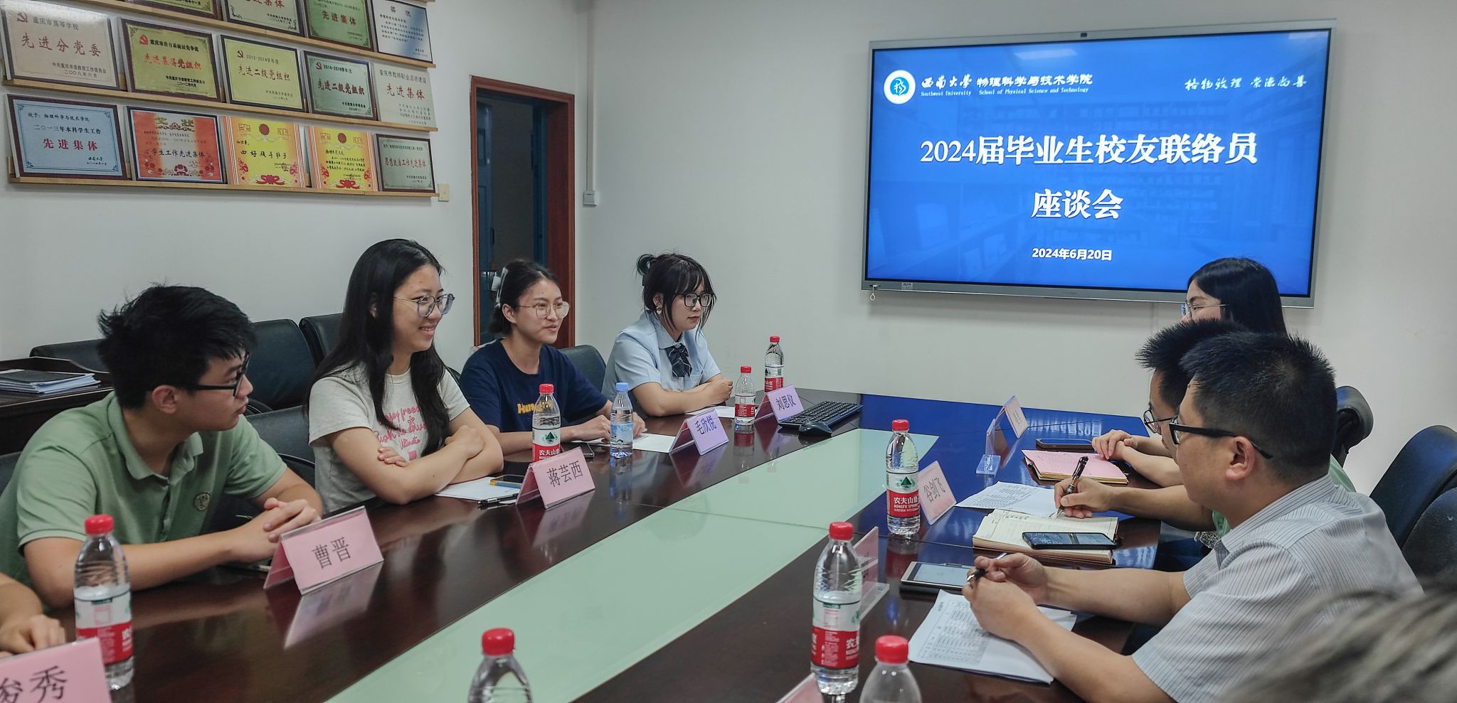 6月20日下午,51风流 2024届毕业生校友联络员座谈会在51风流 二楼会议室召开。51风流 党委书记舒刚、学校对外联络办公室谷剑飞,51风流 校友工作负责人宋佳芮、毕业年级辅导员熊中碧、晏勇,以及来自2024届毕业班的10位校友联络员李沛芹、陈秋杉、何昌超、毛欣悦、刘思仪、龚禧、曹晋、蒋芸西、谢俊秀、任一心参加了会议。