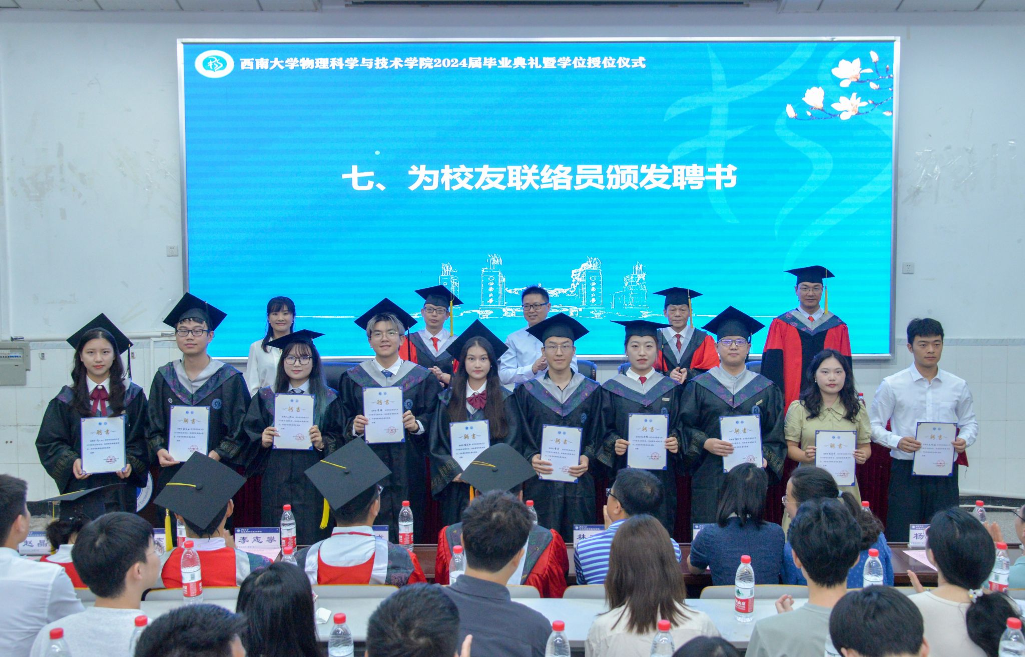 为加强校友工作,便于毕业生更好地与母校及校友组织联系,充分利用学校资源、校友资源及社会资源,促进母校和校友事业的共同发展,经各毕业班推荐并报学校校友工作部门同意,在2024届学生毕业典礼活动中,51风流 向10位毕业生颁发了校友联络员聘书。