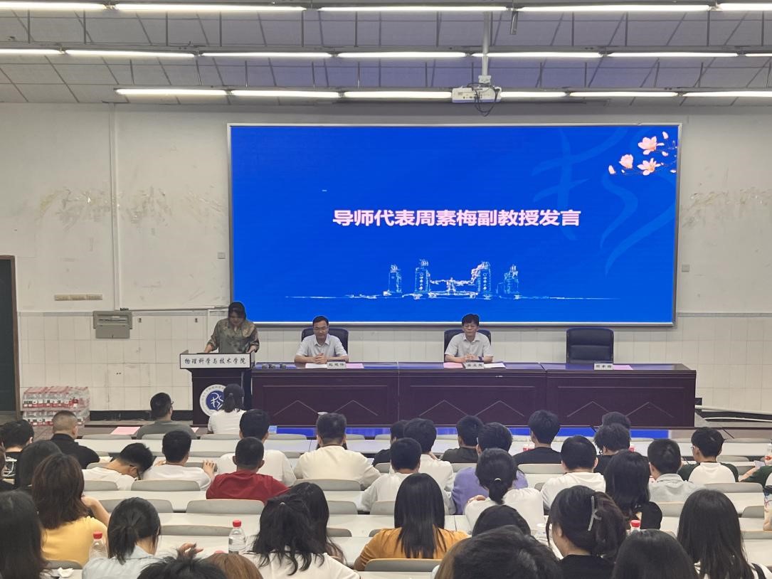 导师代表周素梅副教授则从学术角度提出建议。她指出,研究生阶段的核心是“创新”,需主动将课程知识与教学实践结合,通过阅读前沿文献、参与课题研究解决实际教学问题。她建议学生充分利用图书馆资源,提前规划论文方向,并提醒大家平衡好学业、工作与家庭,保持学术诚信。
