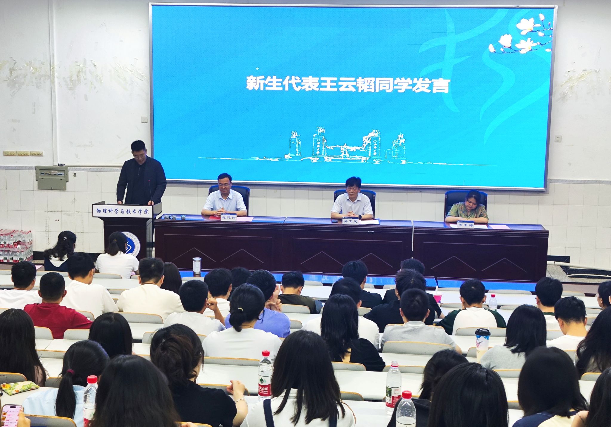 副院长赵建伟教授叮嘱新生遵守纪律、积极思考,尽早确立研究课题,并注意防暑健康。教学秘书龙薇随后为新生开展入学教育。
