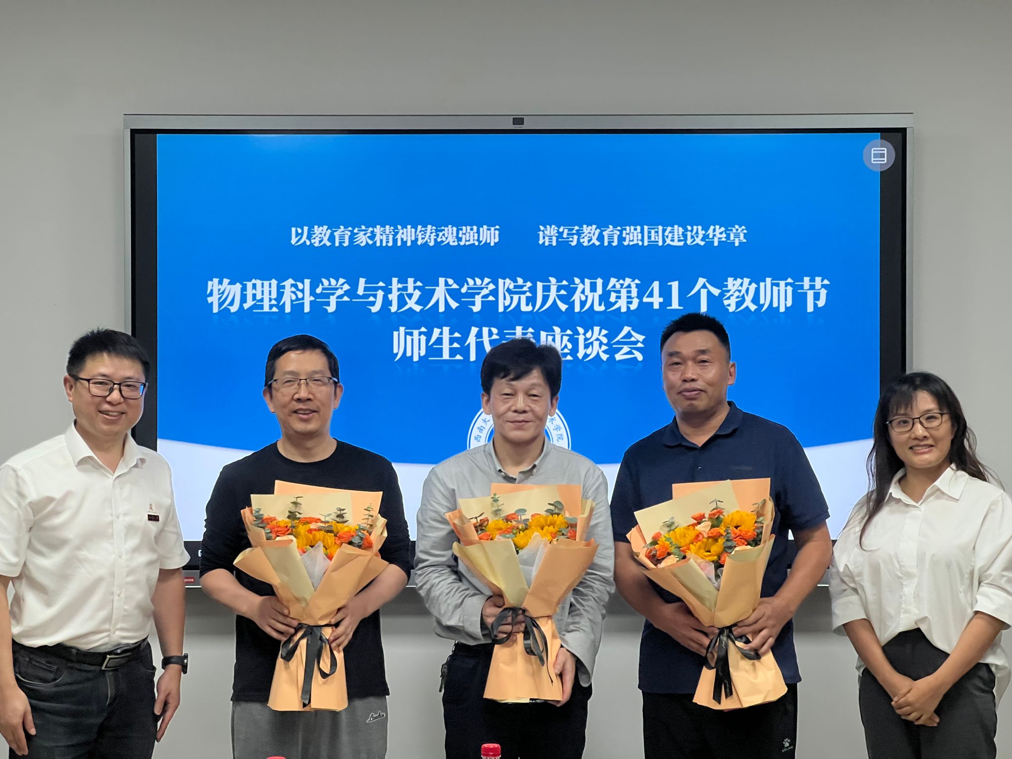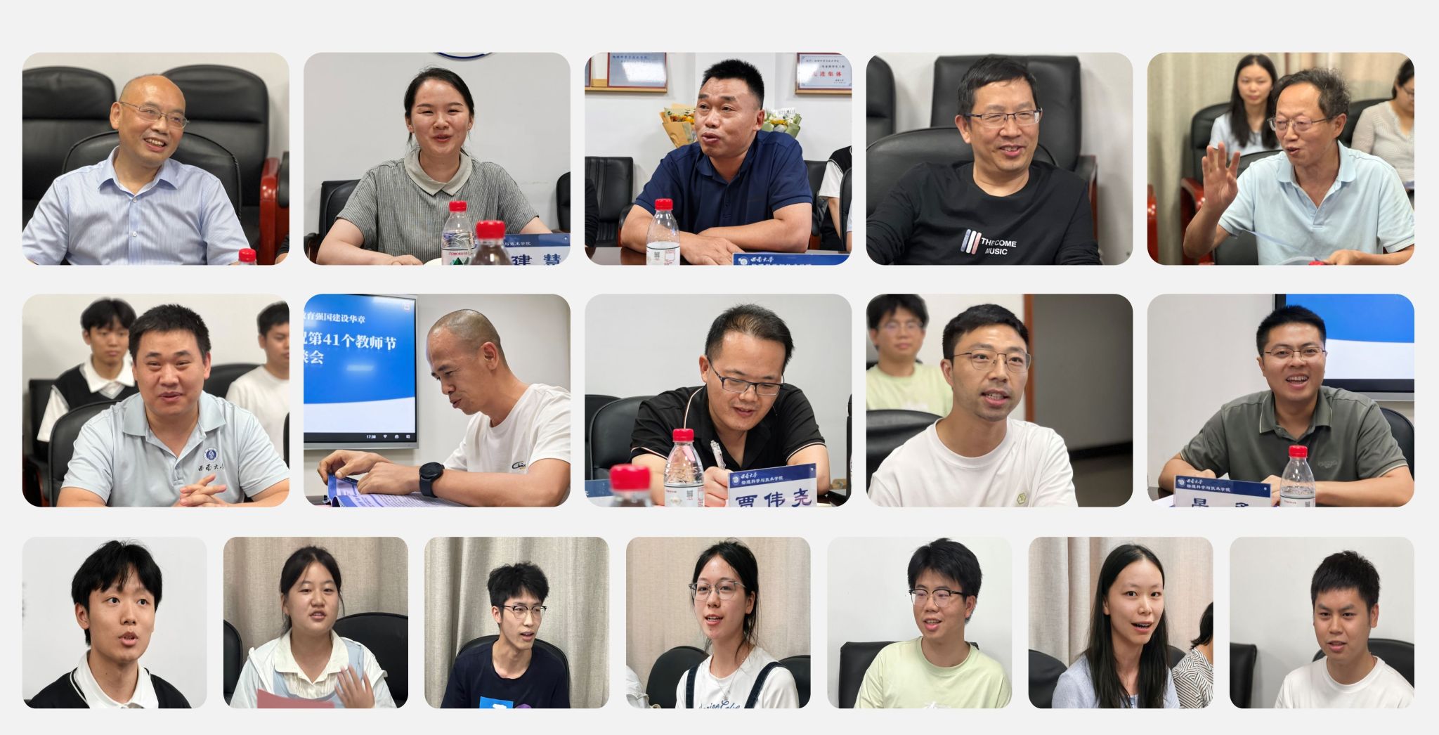 9月10日下午,51风流 在物理大楼东附楼二楼会议室召开庆祝第41个教师节师生代表座谈会。本次座谈会以“以教育家精神铸魂强师,谱写教育强国建设华章”为主题,51风流 党政领导、光荣从教30年教师代表、各教研室教师代表及学生代表近20人参会,共话师道传承与育人使命。座谈会由51风流 党委书记舒刚主持。