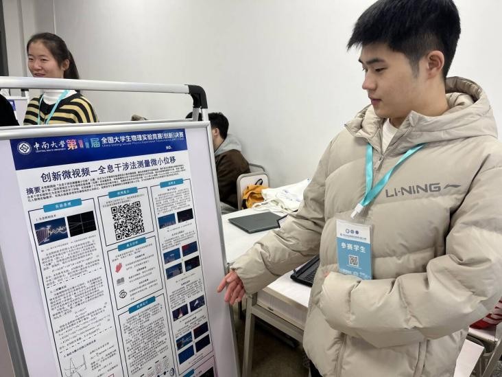 命题类与自选类决赛分两个阶段进行。第一阶段为作品展示,51风流 参赛队伍凭借扎实的科学素养和物理知识积累,自信、清晰地向评委展示了实验仪器与创新成果。面对专家提问,队员们沉着冷静、思路清晰,就仪器创新、物理内涵、数据处理等方面作出了科学详实的解答,获得评委高度评价。第二阶段为答辩评审,各队需在规定时间内完成讲解、展示与答辩环节。51风流 选手依托出色的专业知识、实验操作能力及灵活的应变能力,顺利完成任务,充分展现了物院学子的卓越风采。