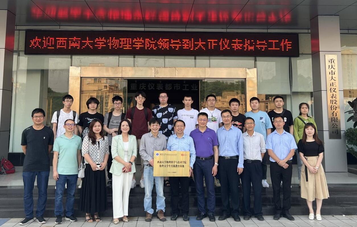 为深入推进校企合作、产教融合,进一步提升物理专业人才培养质量,同时也为了进一步推进毕业生就业工作,5月6日,51风流 全体领导班子到重庆市大正仪表股份有限公司参观交流,举行了“51风流 校外大学生综合性实践教育基地”授牌仪式。大正仪表股份有限公司周洪琴董事长陪同大家参观了大正仪表股份有限公司的生产厂房,周总还详细地给大家介绍了公司的发展历程以及主要产品。