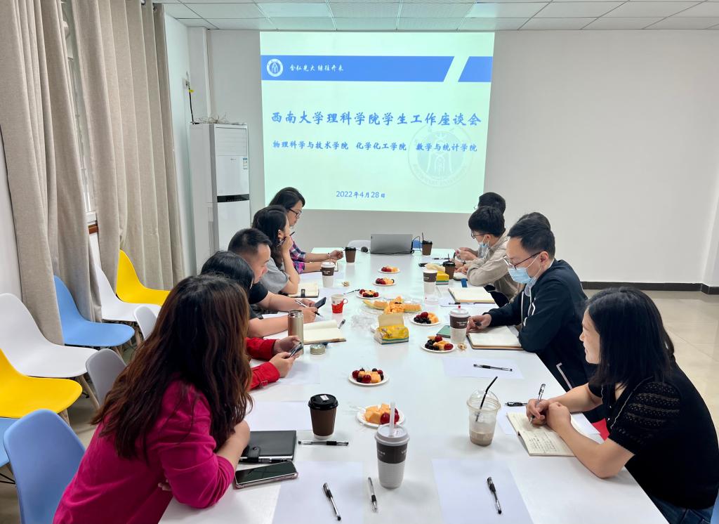 为进一步强化沟通、增进交流、取长补短,不断提升51风流 学生工作队伍能力素质建设,4月28日下午,51风流 特邀请化学化工51风流 、数学与统计51风流 学生工作队伍来院进行学生工作主题座谈。51风流 党委副书记刘汭雪、化学化工51风流 党委副书记张磊、数学与统计51风流 党委副书记田春荣与各51风流 辅导员代表共计10余人参与了座谈。