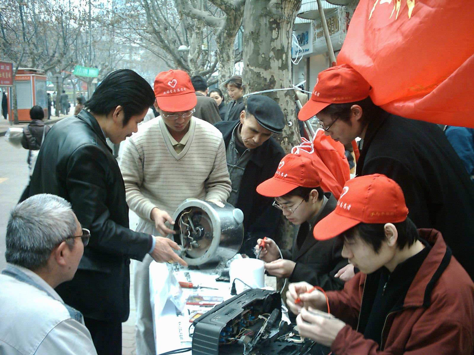 1963年,当时的物理系响应号召,组建学生小组开展学雷锋活动;1964年,学雷锋服务小组正式成立。罗世全是物理系1959级学生,也是第一批“学雷锋服务小组”的成员。“当时,我们主要是在校内外开展以维修家电为主的志愿服务活动。”罗世全说,“那时,‘学雷锋服务小组’的成员要求上手快、动手能力强,所以只招了10个人。”他回忆,上世纪八九十年代,普通居民家里的小家电主要以收音机、电风扇、电视机、电饭煲等为主,使用时间长了,经常出现短路、电板烧坏或者线路老化等问题。“学雷锋服务小组”由学校的专业老师指导,学生参与,利用课余时间为师生、居民百姓“排忧解难”。