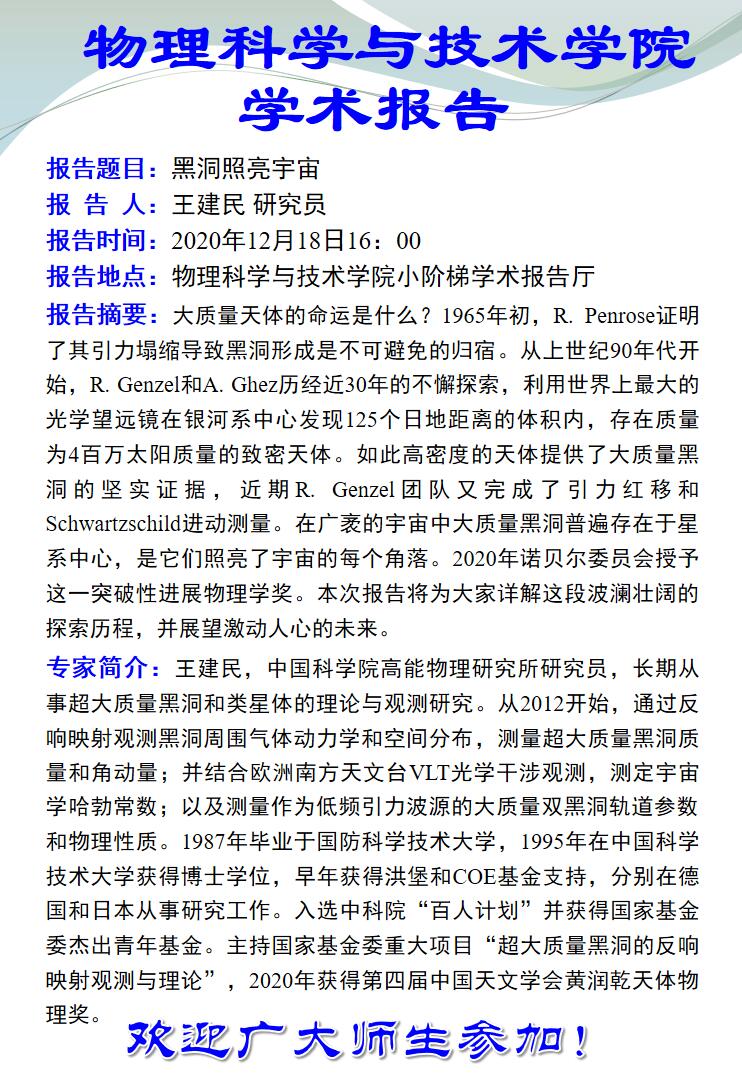 学术报告:黑洞照亮宇宙(12月18日)