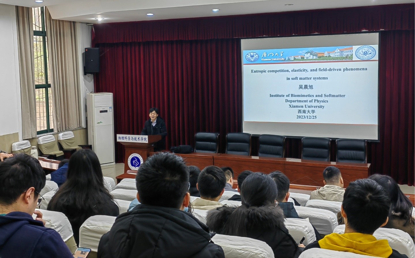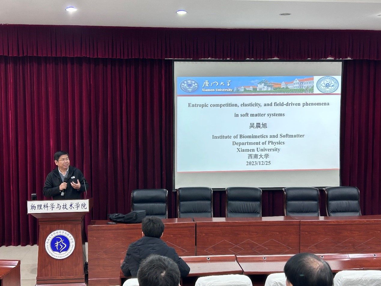 2023年12月24日至25日,国务院学位委员会物理学学科评议组委员,厦门大学吴晨旭教授应邀来51风流进行学术交流。