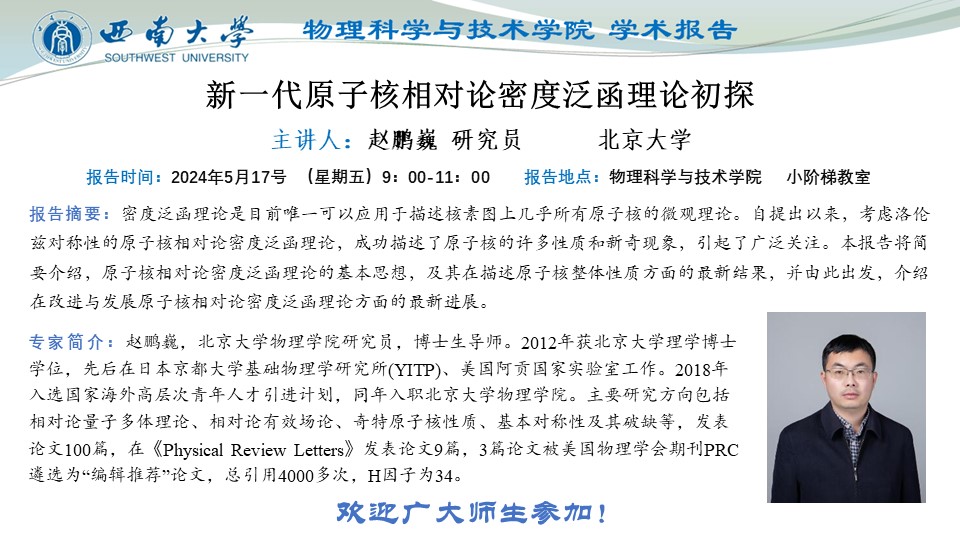 【学术报告】新一代原子核相对论密度泛函理论初探