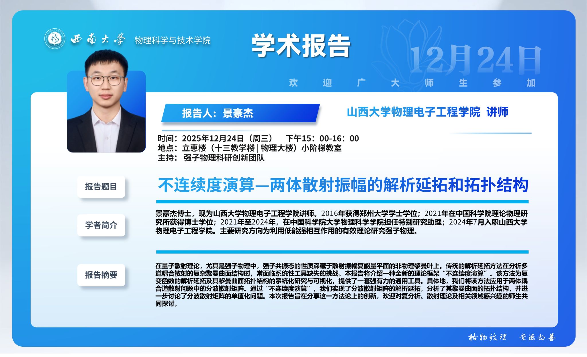 【报告 】不连续度演算—两体散射振幅的解析延拓和拓扑结构