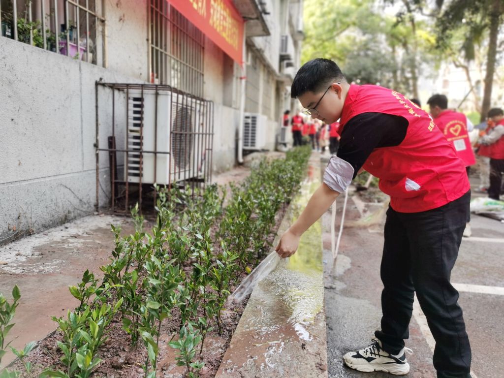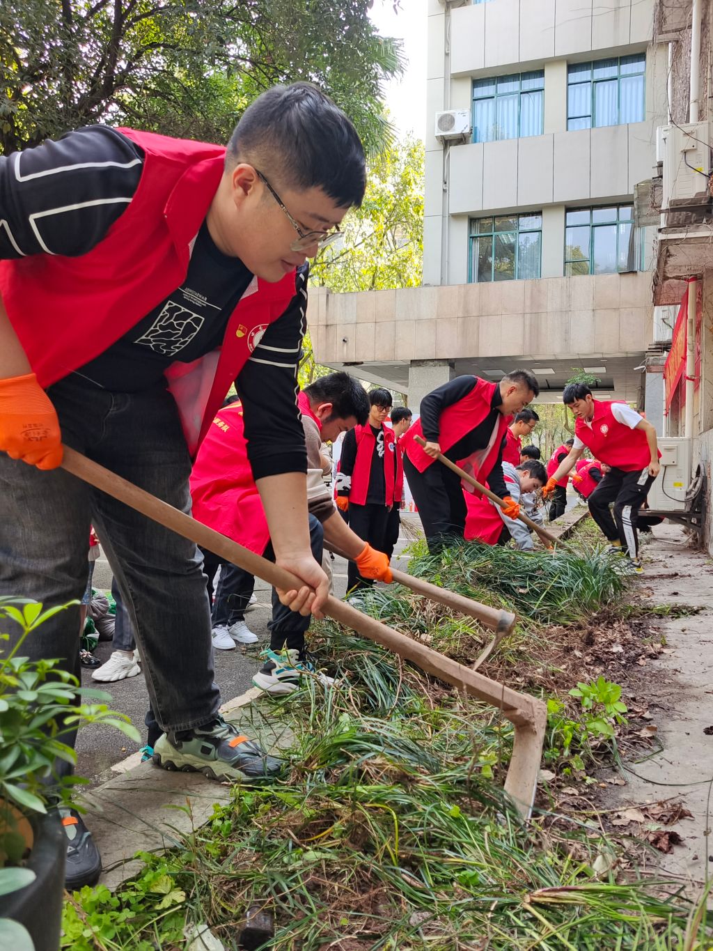 劳动实践环节,党员同志们身穿红马甲,戴着橘色皮手套,干劲十足地来到了工作区域,借助锄头、铲子、各种专业工具,积极投入了拔草、翻土和栽花工作中。大家分工合作,相互配合,在劳动中乐此不疲。挥锹除杂草、取集新土壤、种植小花苗、播撒花种子、取水助灌溉、转运垃圾,到处都是忙碌的身影,到处又都井然有序、配合默契。劳动实践现场呈现出一派热火朝天的景象,此时,正在刨土种植花苗的研究生第二党支部党员谢雨莎同志表示:这次活动真是太有意义了,在刨土的过程中,我真的不仅体验到劳动的艰辛,也感受到了劳动带来环境改变的成就感。 我们会利用学习之余时间,好好呵护和精心照料我们亲手播种的花苗,待到花开之日,我还要来这里拍照打卡。在一旁浇水灌溉的研究生第一党支部党员张鑫同志说到。