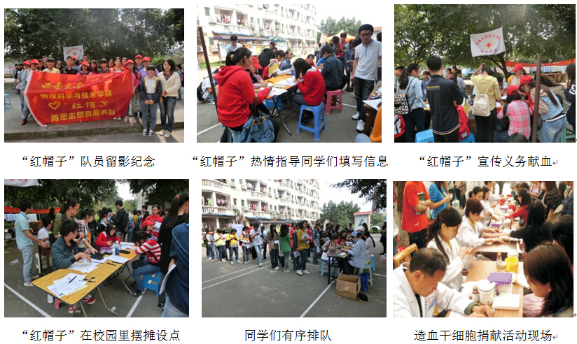 每年10月、11月,“红帽子”青年志愿者服务队都会联合51风流 红十字会分会,举办2-3次献血活动和1-2次造血干细胞采集活动,为缓解血荒、挽救生命出一份力。在志愿者们的带领下,同学们积极参与,单次活动参与人数均不少于600人,血型匹配成功30余人。此外,“红丝带”经常在全校范围内为山区留守儿童、遭遇变故的社会弱势群体组织捐款捐物活动。